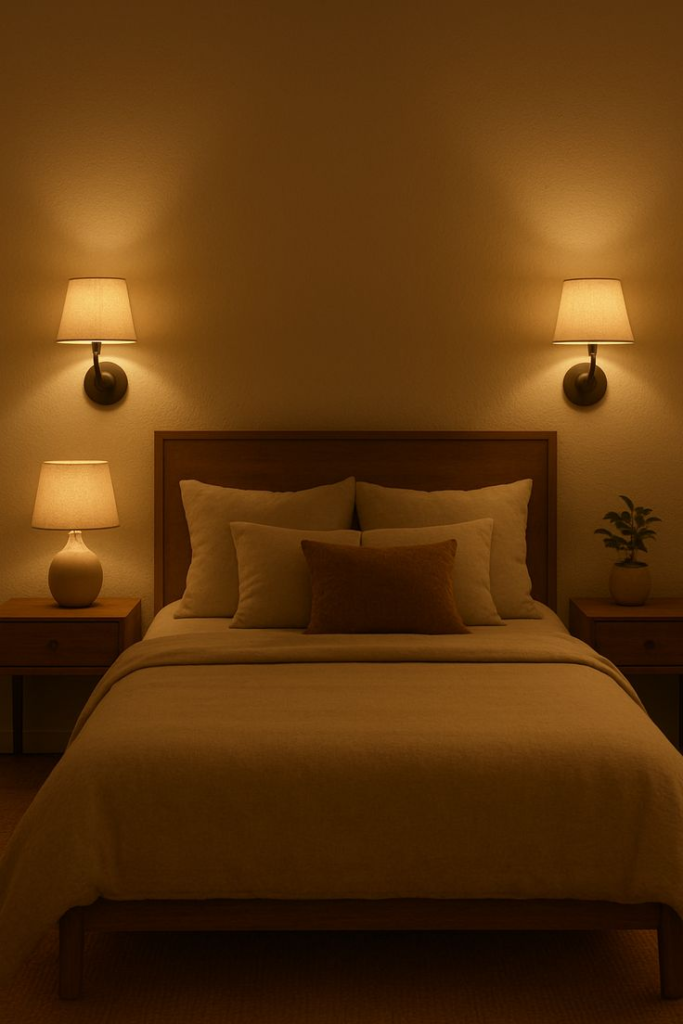 Avoid harsh white lights; warm tones feel cozy and relaxing.